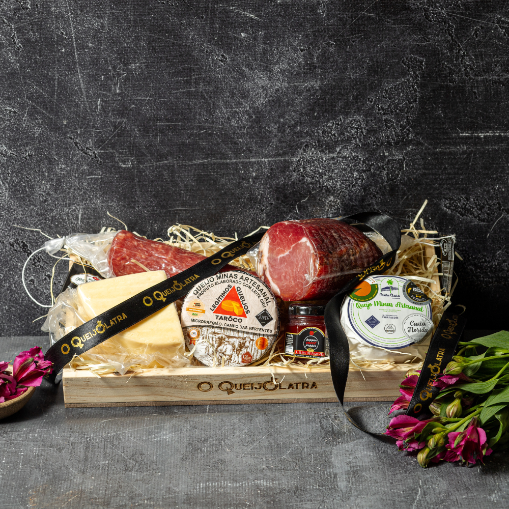 Um presente perfeito para que é apaixonado por queijos meia curas e charcutaría artesanal, escolhemos 3 Queijos mineiros deliciosos + 1 copa e 1 salame artesanais lá da serra gaucha, e para deixar essa experiencia ainda mais gostosa, vai junto uma mini geléia que harmoniza muito bem com todos os queijos.